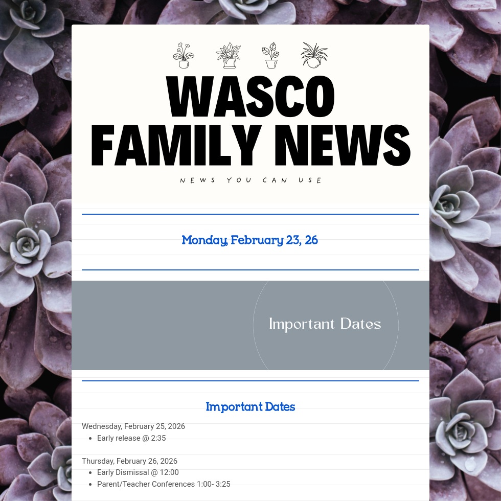 Kindergarten Registration for the 2026-2027 school year will be January 26th - February 20th. Click here for more information.