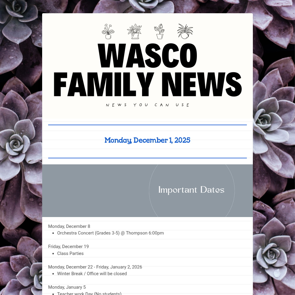 Newsletters are sent out via Finalsite
